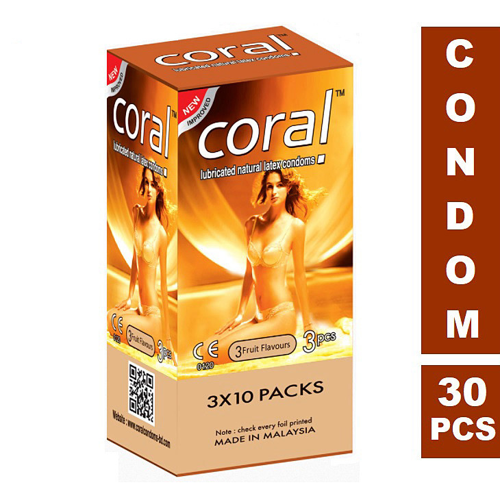 "Experience a burst of tropical delight with Coral 3 Fruits Flavors Lubricated Natural Latex Condoms. Infused with the exotic essence of three tantalizing fruits, these condoms offer a deliciously sensual encounter for you and your partner. Crafted with premium natural latex and lubricated for smoothness, Coral 3 Fruits condoms provide reliable protection while enhancing intimacy. Explore the exhilarating blend of flavors and indulge in a heightened sensory experience. Elevate your pleasure with Coral 3 Fruits Flavors Lubricated Natural Latex Condoms."