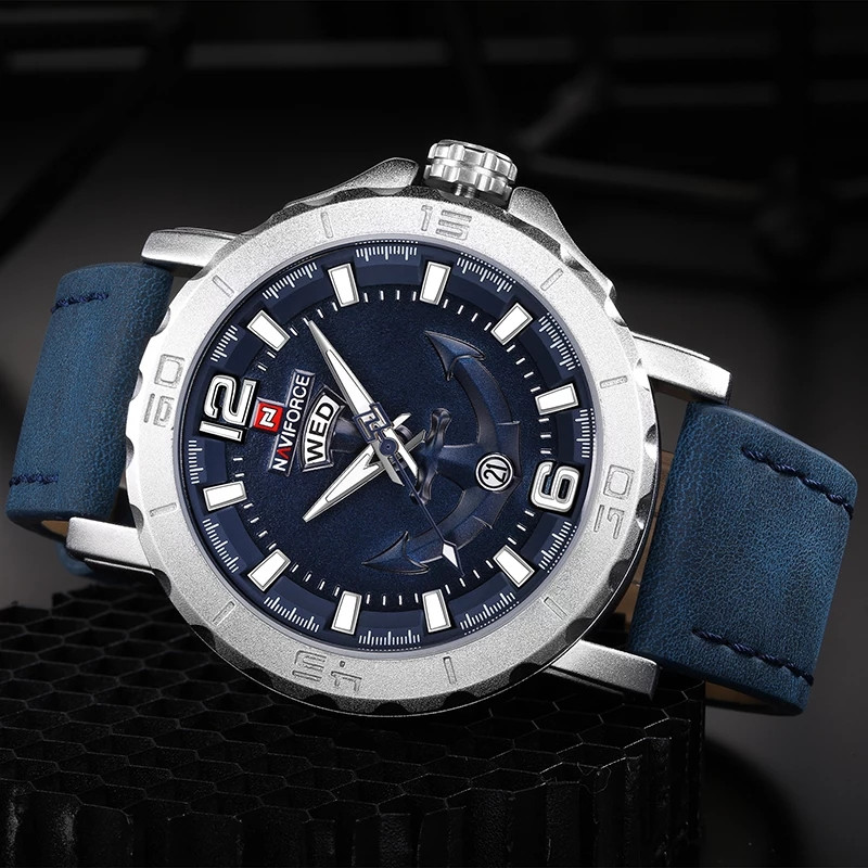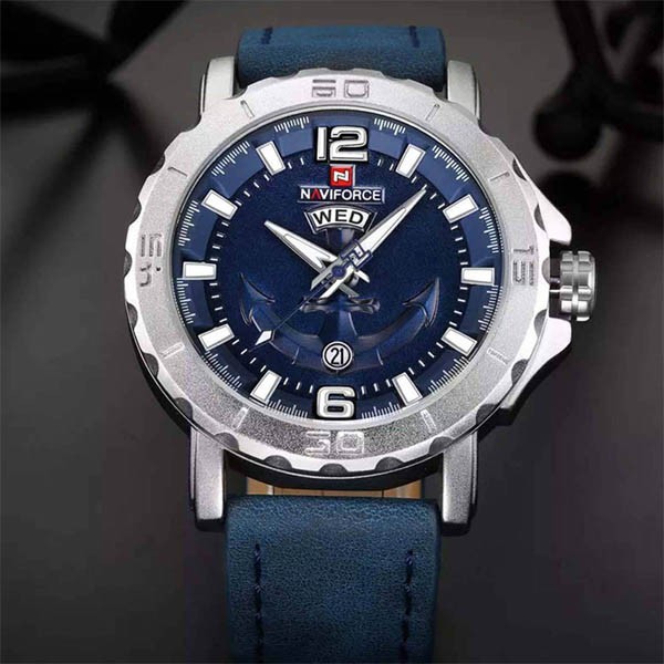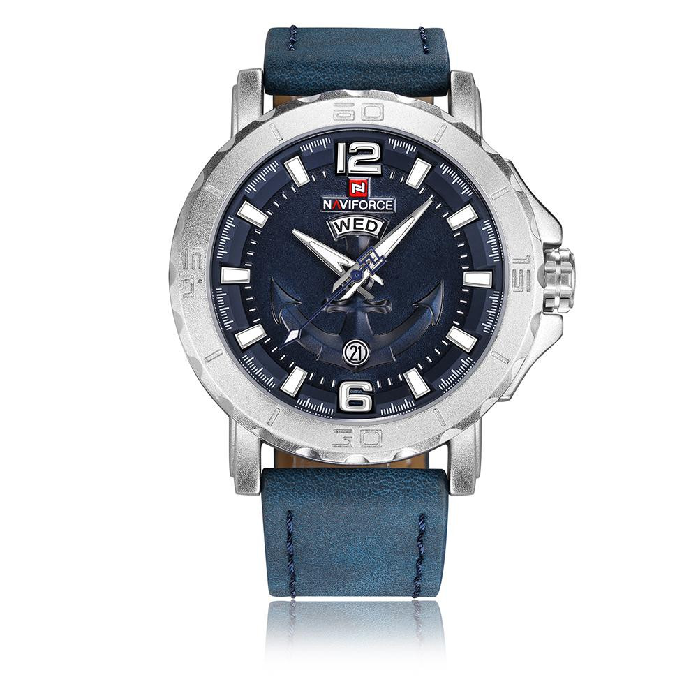 NAVIFORCE 9122 Genuine Leather Belt Men Watch-Silver Blue