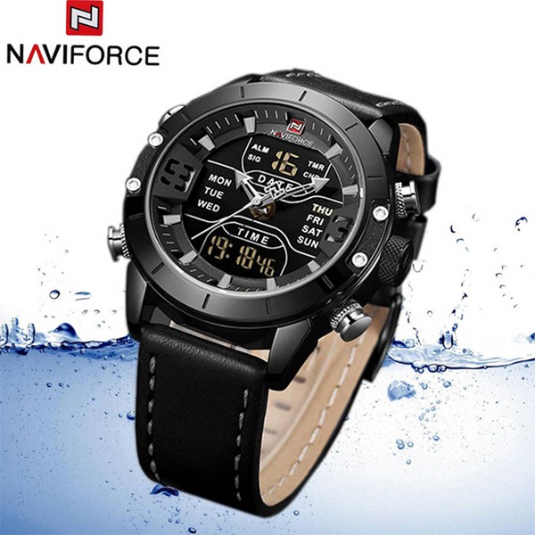 Naviforce 9153 Black Genuine Leather Belt Watch Men's