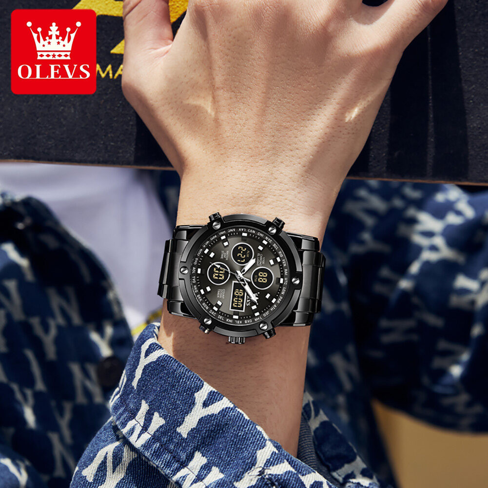 OLEVS 1106 Stainless Steel Waterproof Black Watch for Men's