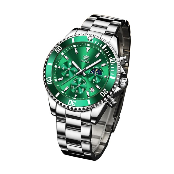 OLEVS 2870 Silver Green Waterproof Stainless Steel Casual Watch for Men's