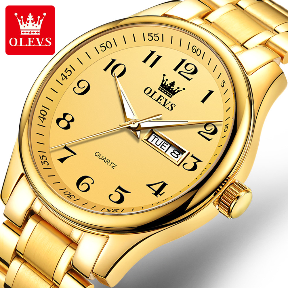 OLEVS 5567 Golden Waterproof Classic Stainless Steel Quartz Watch for Men’s