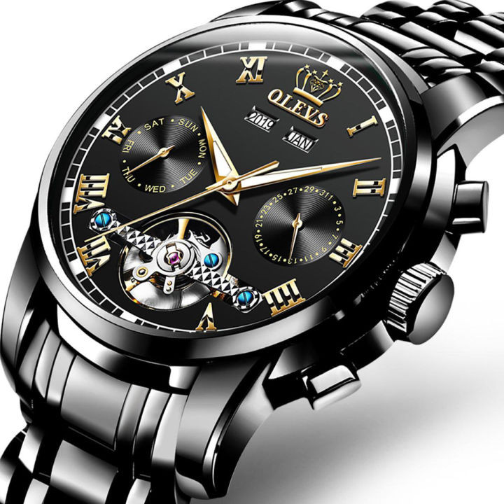 OLEVS 6607 Premium Quality Automatic Mechanical Fashion Stainless Steel Waterproof Watch for Men's- Black
