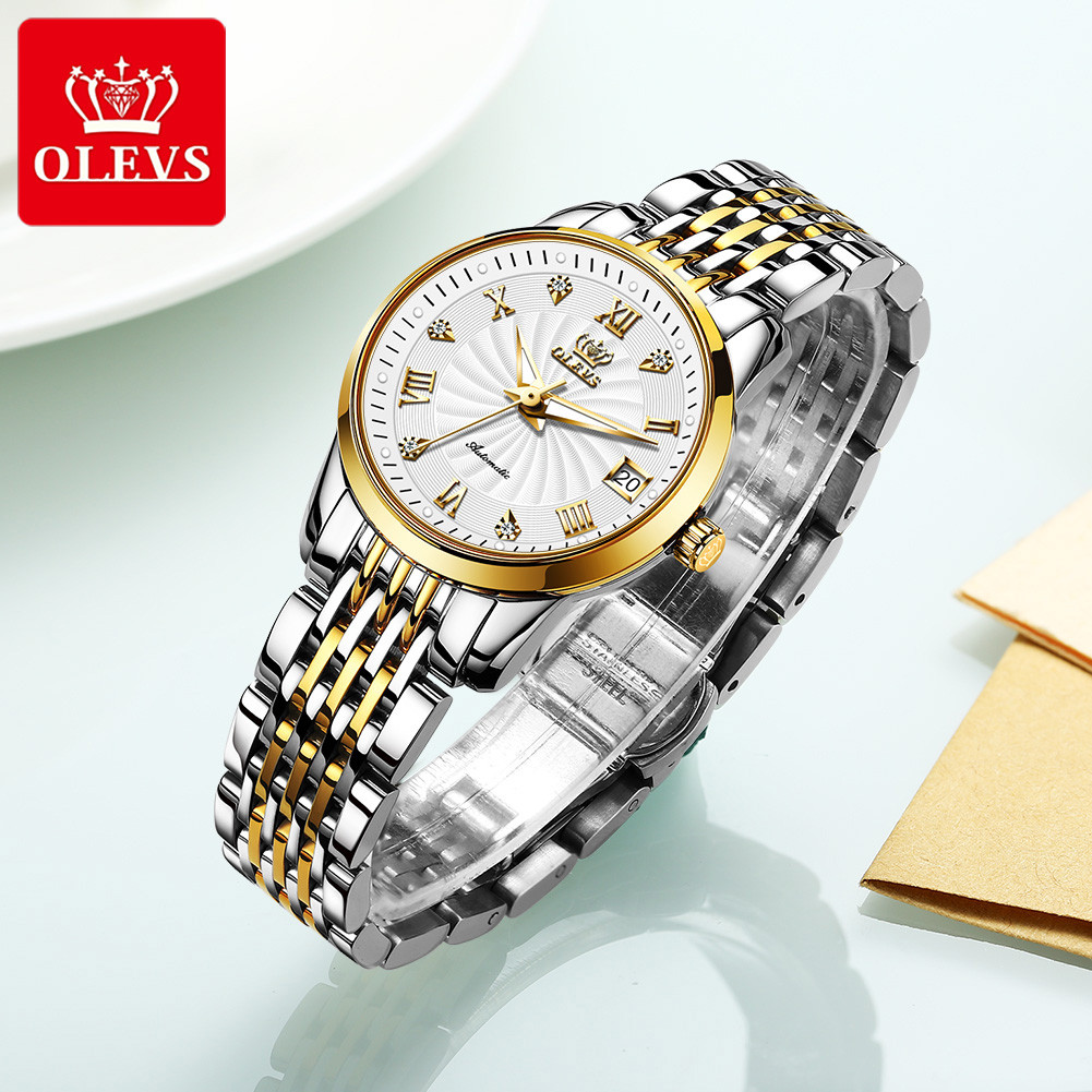OLEVS 6630 Automatic Mechanical Stainless Steel Luxurious Watch For Women- White