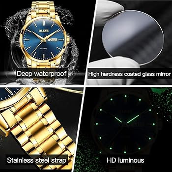 OLEVS 6898 Luminous Stainless Steel Waterproof Analog Quartz Watch for Men-Blue Golden