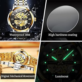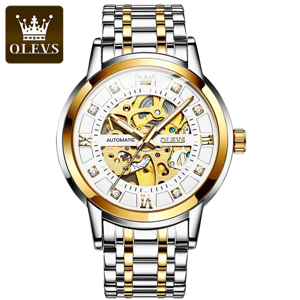OLEVS 9901A Luxury Hollowing Automatic Mechanical Wristwatch Waterproof Luminous Stainless Steel Fashion Watch for Man's