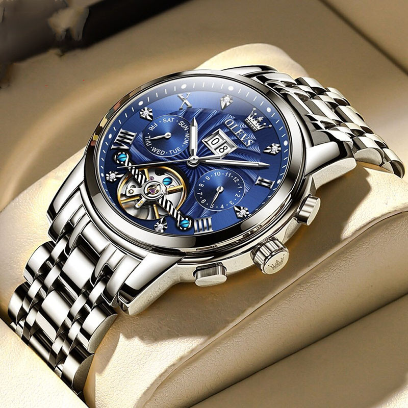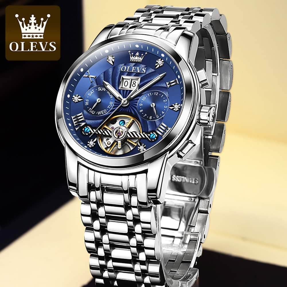 Experience timeless elegance with the OLEVS 9910 Men's Automatic Mechanical Tourbillon Self-Wind Luxury Stainless Steel Watch. Crafted with precision and sophistication, this watch features a mesmerizing tourbillon movement that showcases the intricate mechanics of timekeeping. With its self-winding mechanism, you'll never have to worry about battery changes, while its waterproof design ensures durability and reliability in any setting. Made from high-quality stainless steel, this watch exudes luxury and style, making it the perfect accessory for any occasion. Elevate your look with the OLEVS 9910 Men's Automatic Mechanical Tourbillon Self-Wind Luxury Stainless Steel Watch.