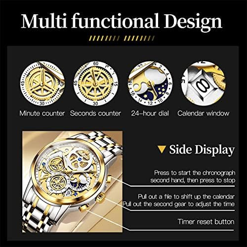 OLEVS 9947 Stainless Steel Chronograph Luminous Waterproof Multifunctional Watch for Men’s- Golden Silver