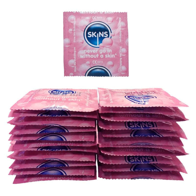 "Indulge in playful intimacy with SKINS UK Bubblegum Flavored Condoms. Designed for both protection and pleasure, these condoms offer a burst of sweet flavor to enhance your sensual experience. Crafted with premium materials and advanced technology, SKINS UK Bubblegum Condoms provide reliable protection while adding an exciting twist to your intimate moments. Explore our range of delicious flavors and elevate your sensory experience with SKINS UK Bubblegum Condoms. Because safe doesn't mean sacrificing excitement."