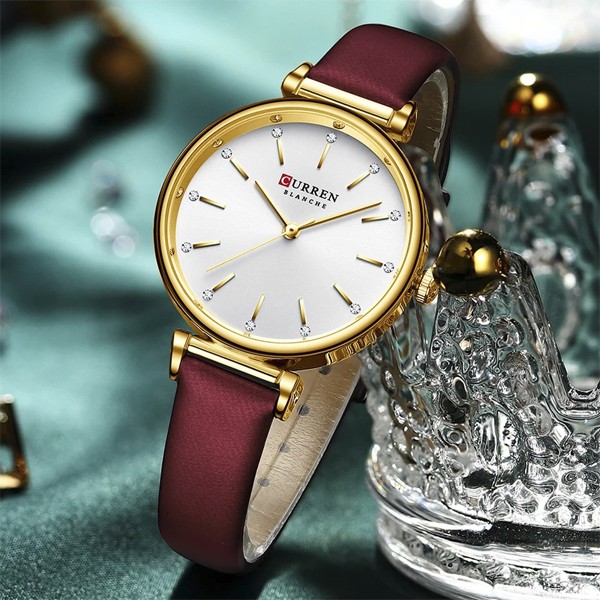 CURREN 9081 Silver Dial & Coffee Belt Watch For Women