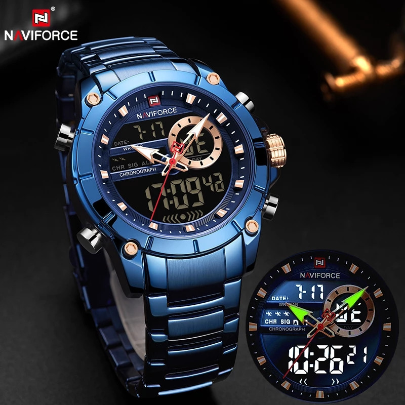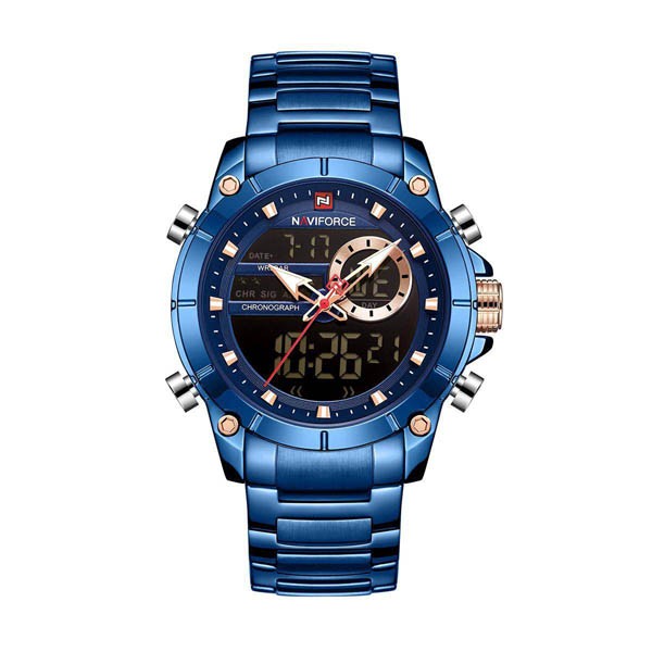 NAVIFORCE 9163 Blue Stainless Steel Dual Time Men's Watch