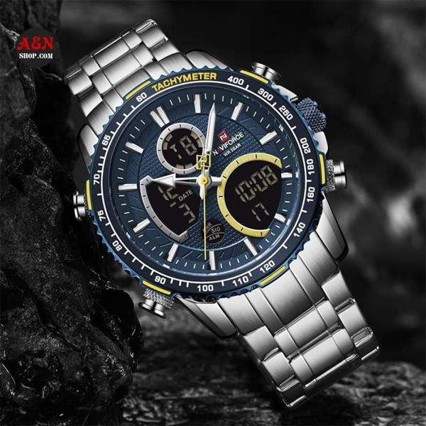 NAVIFORCE 9182 Silver Blue Chromium Stainless Steel Watch for Men's