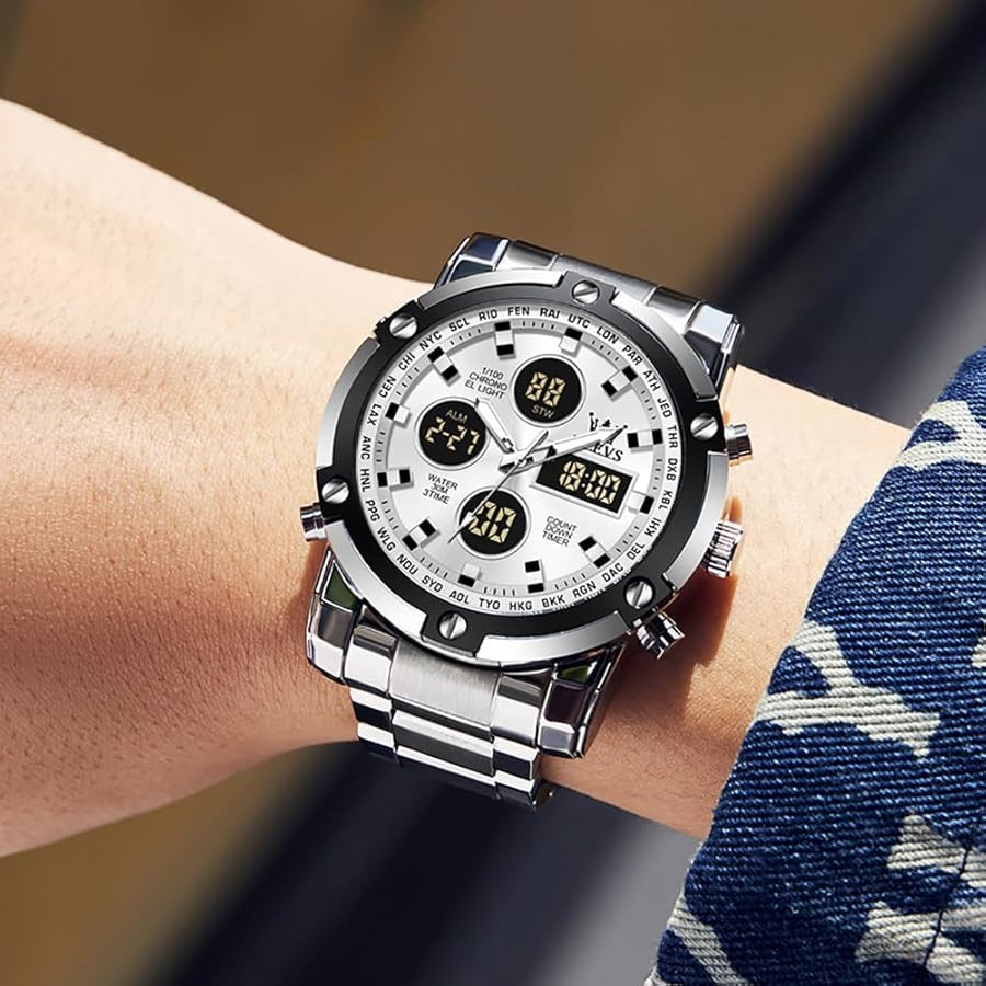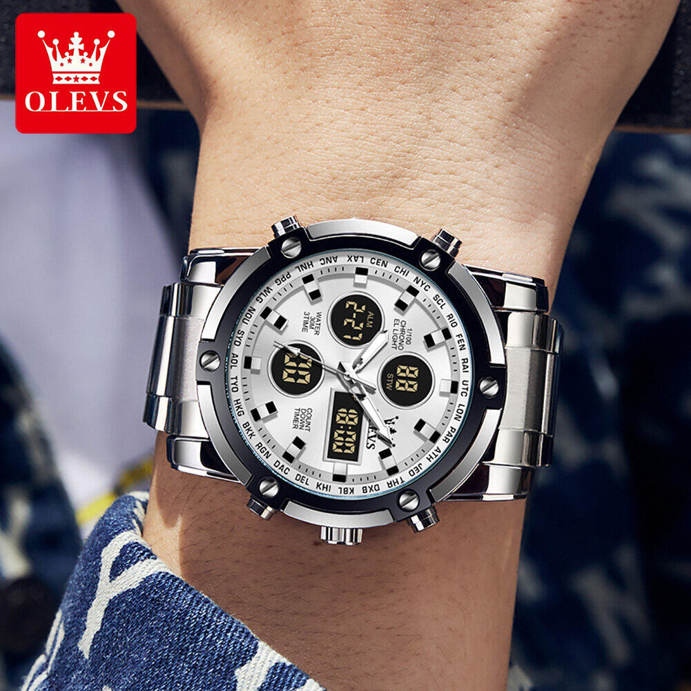 OLEVS 1106 Stainless Steel Waterproof Silver White Watch for Men
