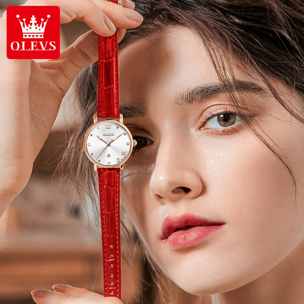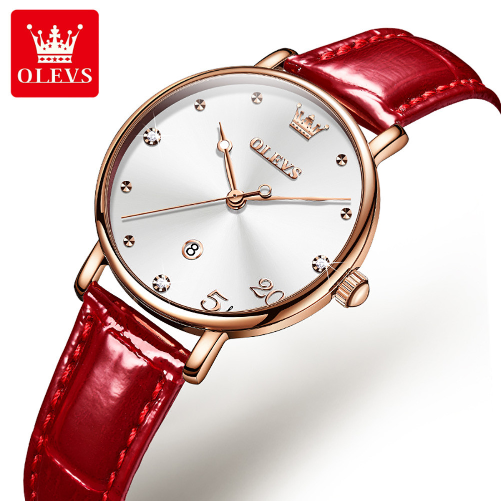 OLEVS 5505 Genuine Leather Belt Women Luxury Quartz Watch- Silver
