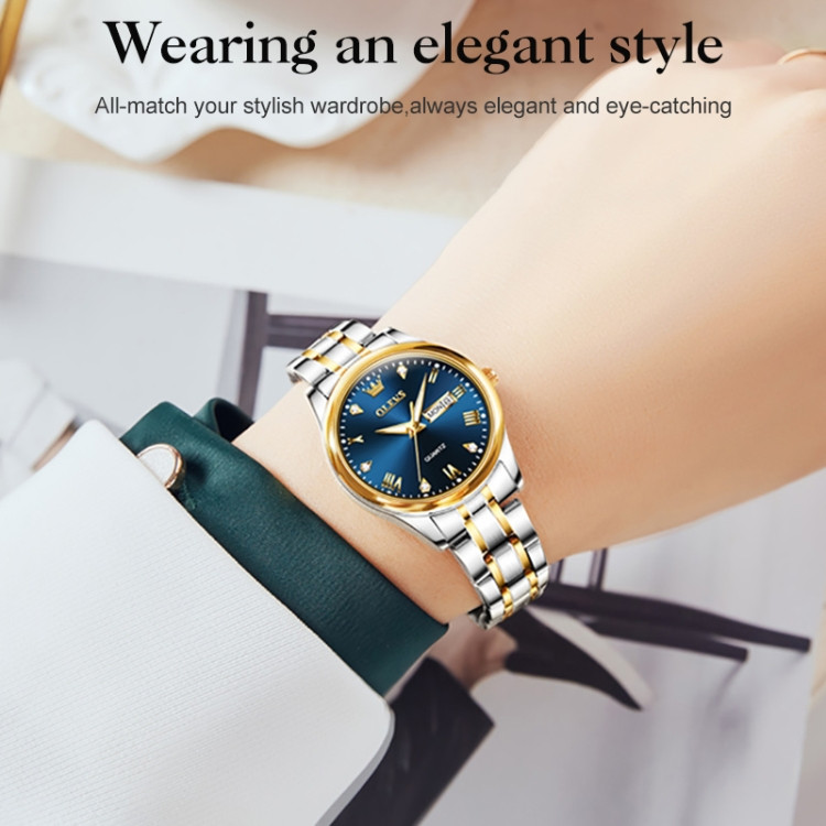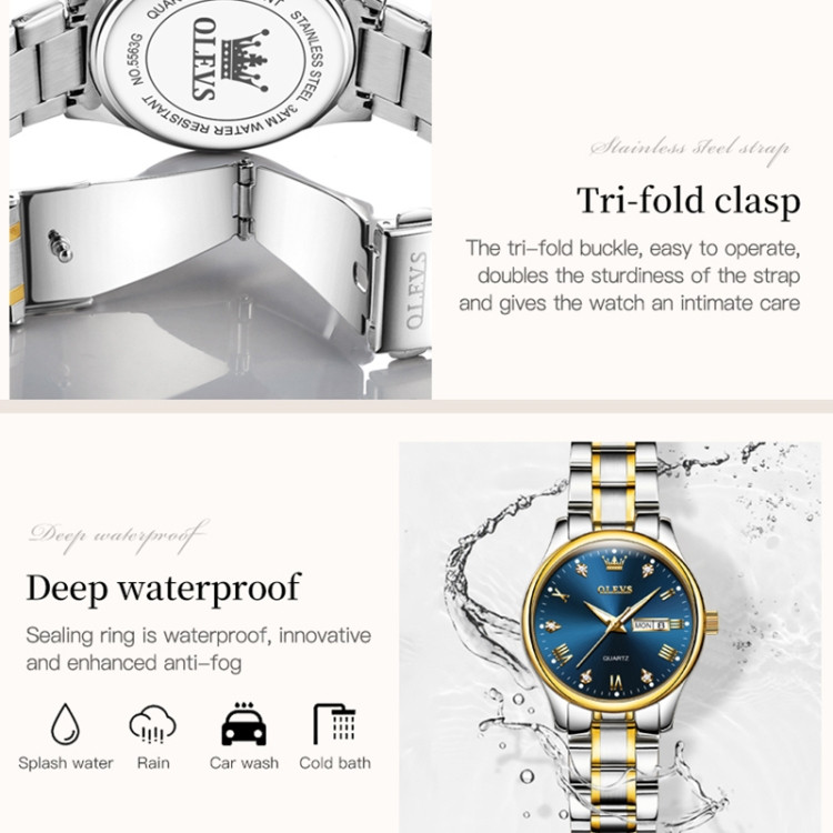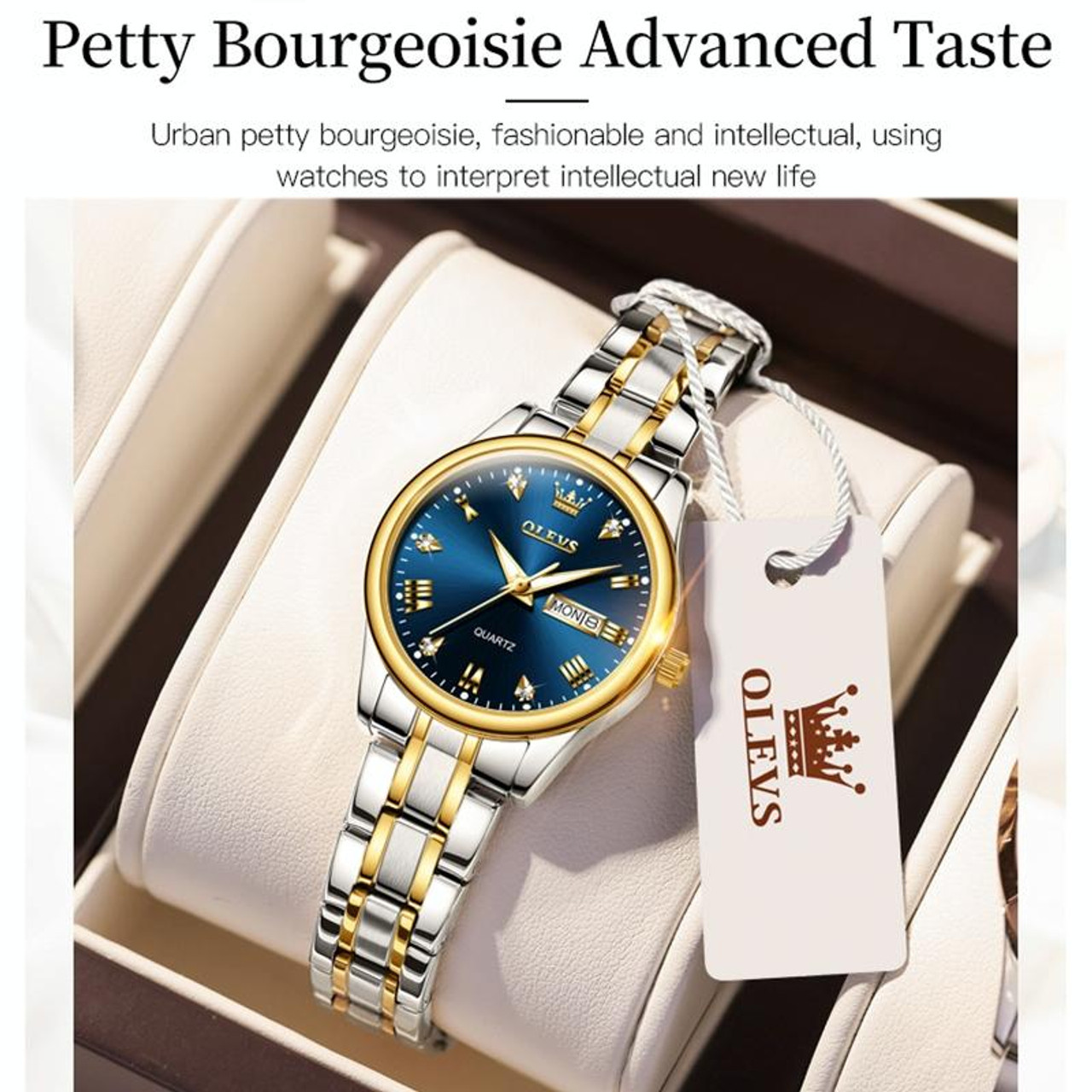 OLEVS 5563 Stainless Steel Waterproof Watch For Women- Blue