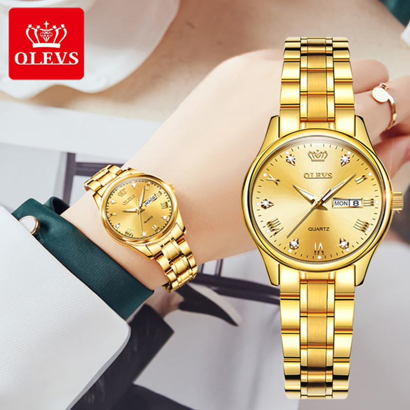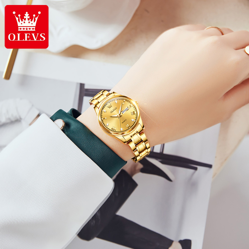 OLEVS 5563 Stainless Steel Waterproof Watch For Women- Golden