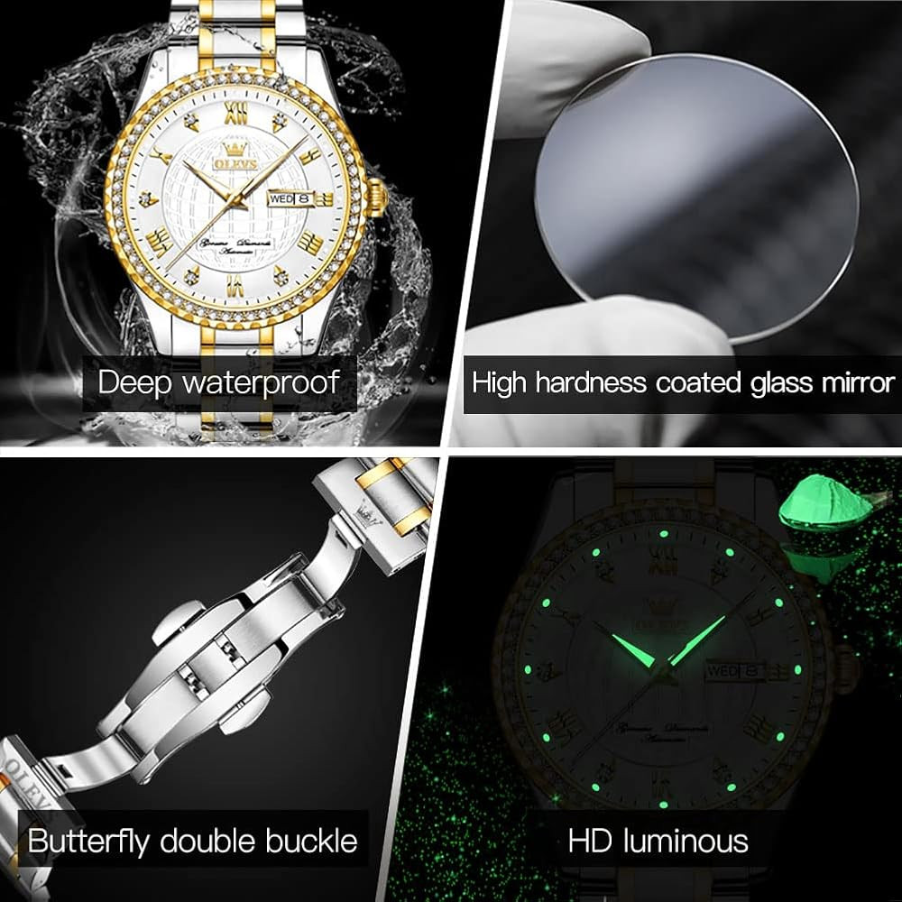 OLEVS 5565 Fashion Stainless Steel Analog Time Diamond Watch for Men's
