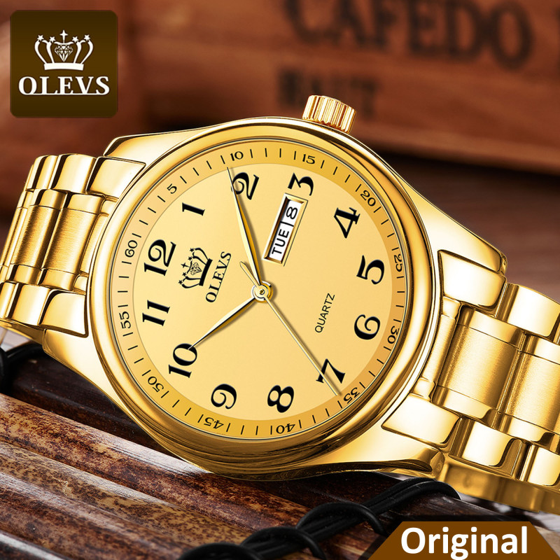 OLEVS 5567 Golden Waterproof Classic Stainless Steel Quartz Watch for Men’s