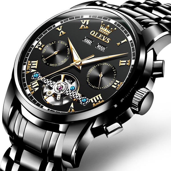OLEVS 6607 Premium Quality Automatic Mechanical Fashion Stainless Steel Waterproof Watch for Men's- Black