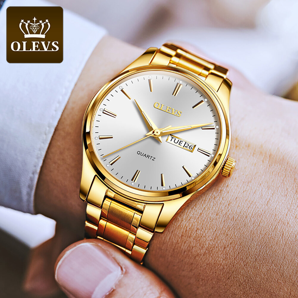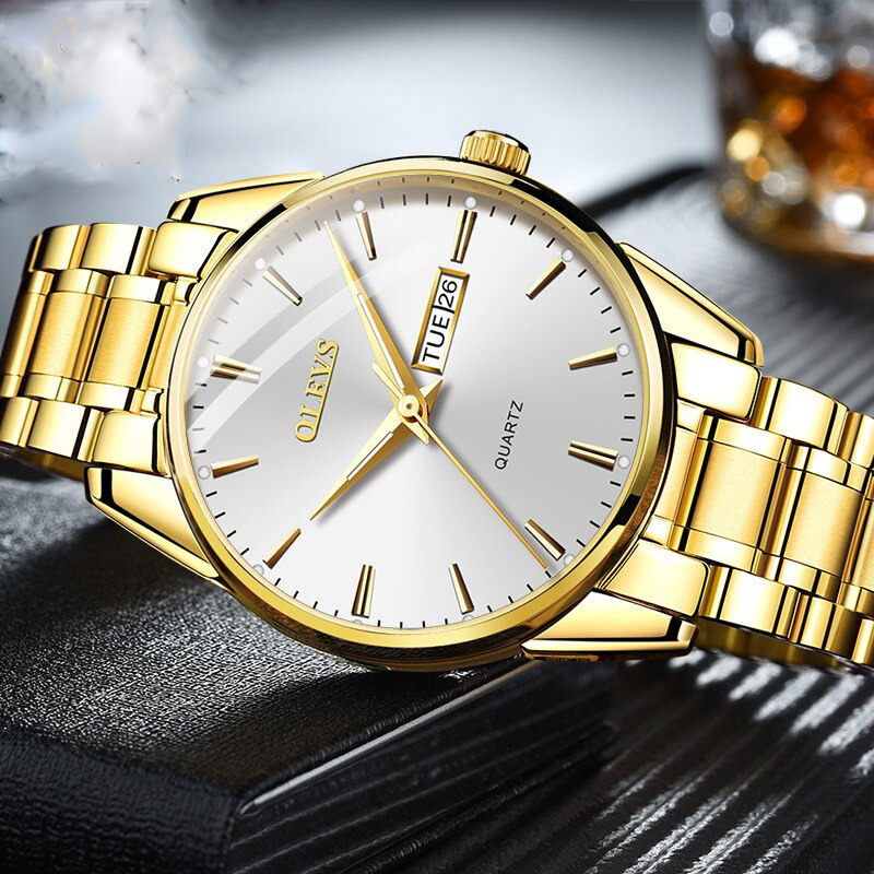 OLEVS 6898 Luminous Stainless Steel Waterproof Analog Quartz Watch for Men-Golden Silver