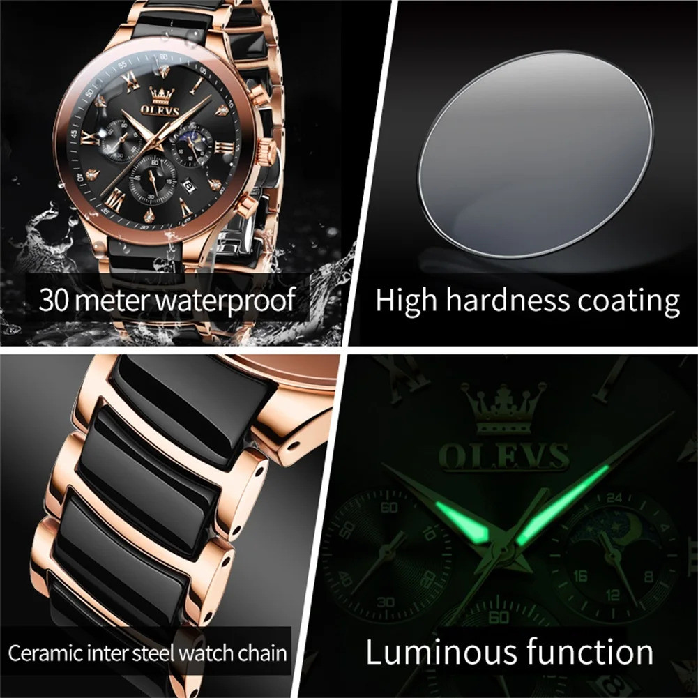 OLEVS 7004 Ceramic Waterproof Luxury Watch for Men's