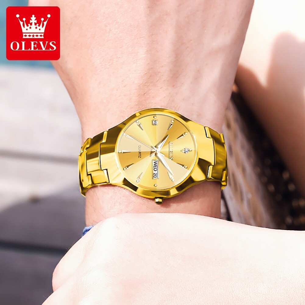 OLEVS 8697 Waterproof Analog Watch Relogio Masculine Luxury Fashion Stainless Steel Quartz Wristwatch for Men's-Golden