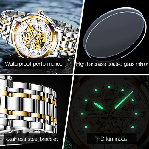 OLEVS 9901A Luxury Hollowing Automatic Mechanical Wristwatch Waterproof Luminous Stainless Steel Fashion Watch for Man's