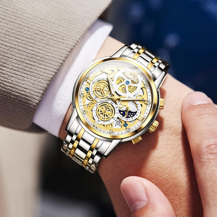 OLEVS 9947 Stainless Steel Chronograph Luminous Waterproof Multifunctional Watch for Men’s- Golden Silver