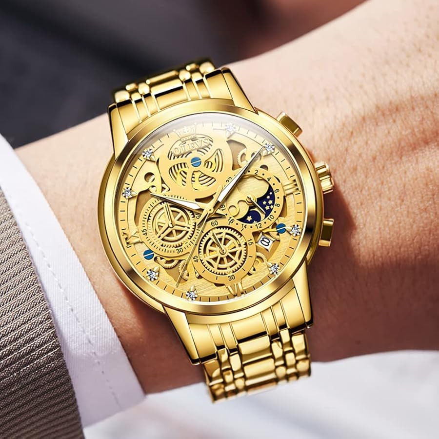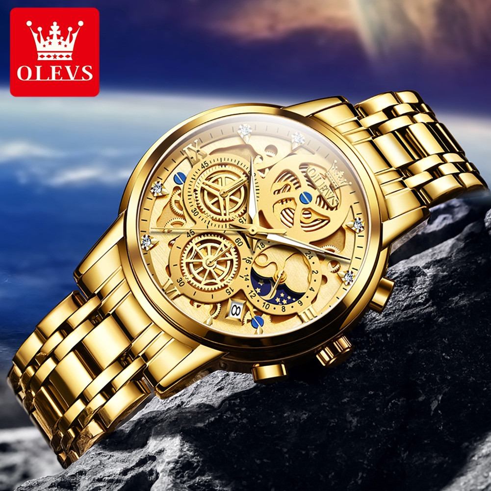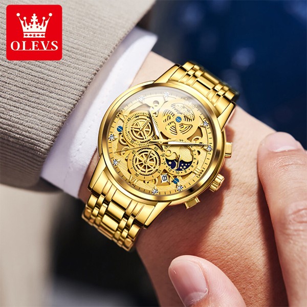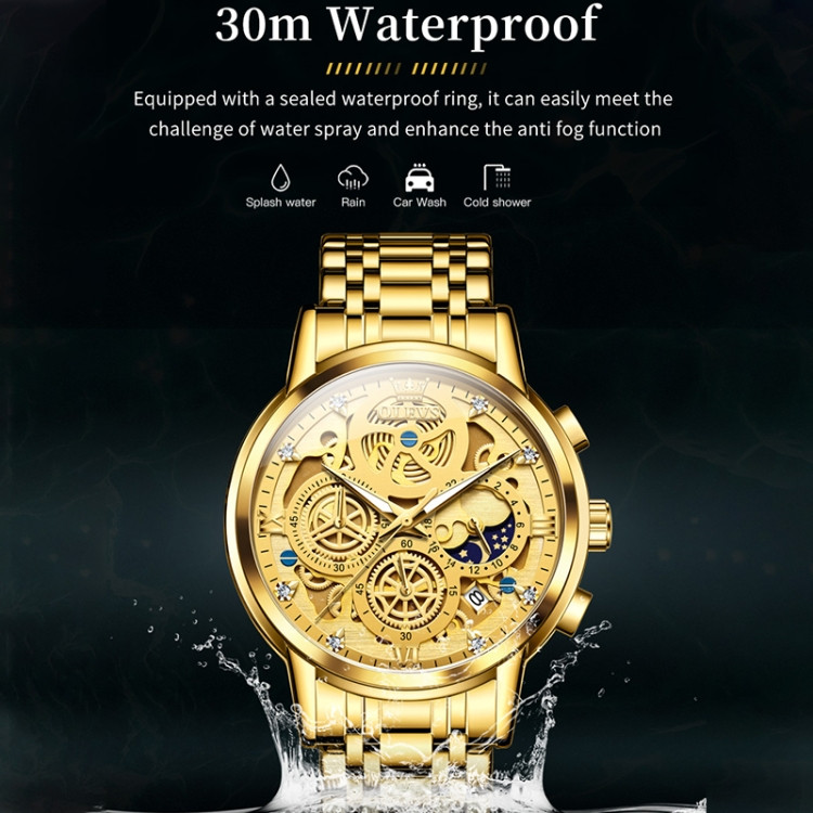 OLEVS 9947 Golden Waterproof Stainless Steel Watch for Men