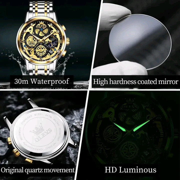 OLEVS 9947 Waterproof Stainless Steel Watch for Men-Black Dial