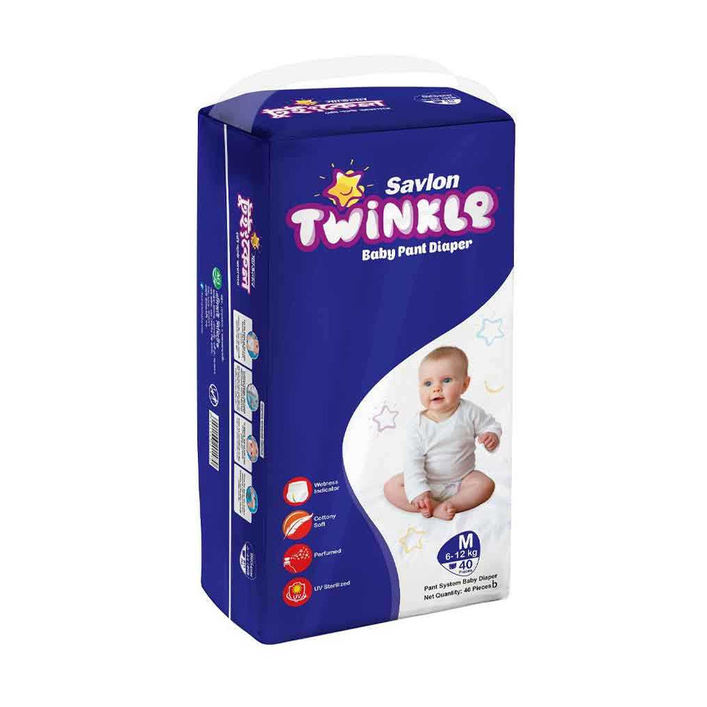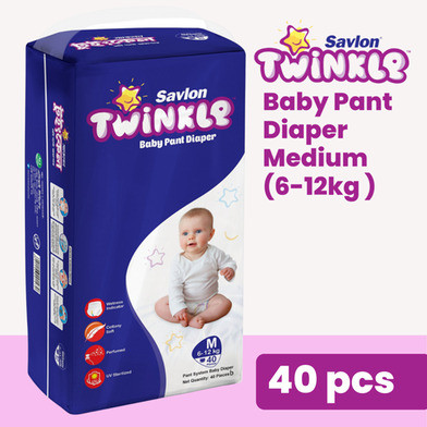 Savlon Twinkle Baby Pant Diaper Medium 40 Pieces is a soft diaper. Twinkle Baby Diaper is an unfailing companion in the wonderful journey called motherhood. Completely Leak Proof.